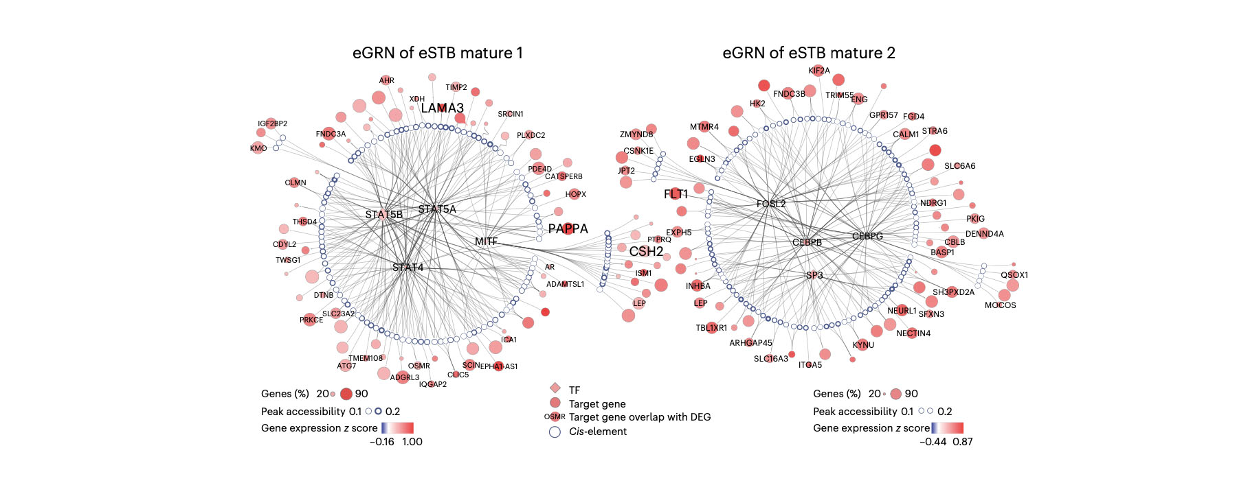 trophoblast stem cell (hTSC)-derived STB. Furthermore, we identified transcription factors associated with diverse STB nuclear lineages through their gene regulatory